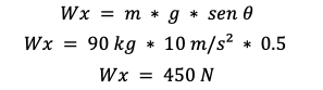 Ahora, sabemos que la fuerza de fricción debe ser igual en magnitud y en dirección opuesta a esta componente del peso para que la velocidad sea constante. Entonces, la fuerza de fricción (fr) es igual a 450 N, pero en dirección opuesta: