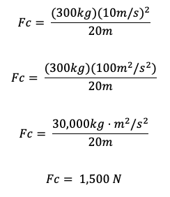 3. Una persona y su moto, juntas, constituyen una masa de 300 kg. Si el conductor toma una curva con radio de 20 m a una velocidad de 10 m/s, ¿cuál es la fuerza centrípeta necesaria para que la moto consiga mantenerse en dicha curva?