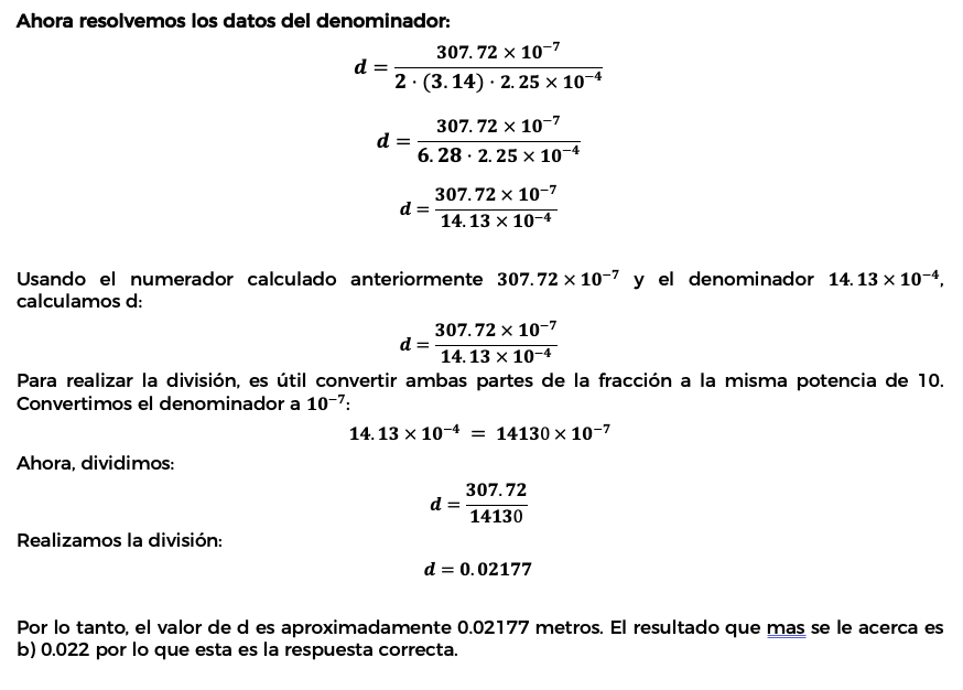 Dado que g = 10 m/s² y F = 2.1 Hz, sustituimos estos valores en la fórmula: