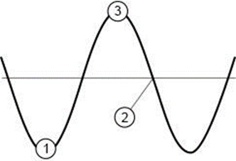La imagen muestra una onda representada gráficamente con tres puntos marcados: 1, 2 y 3. En una onda, el nodo es el punto donde la onda cruza la línea de equilibrio, es decir, donde no hay desplazamiento vertical desde la posición de equilibrio.