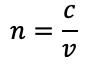 El índice de refracción, n, de una sustancia se puede calcular usando la relación entre la velocidad de la luz en el vacío, c, y la velocidad de la luz en la sustancia, v, mediante la fórmula: