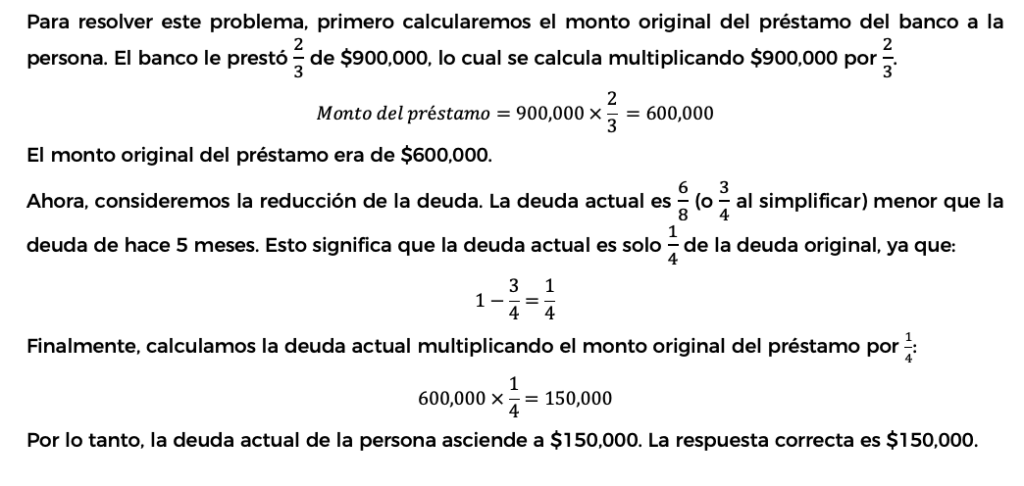 5. Determine a cuánto asciende la deuda de una persona si el banco le prestó  de $900,000, y ahora es  menor que hace 5 meses.