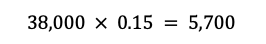 3. Realizar la multiplicación: Al hacer la operación 38,000 × 0.15 obtenemos el monto del descuento.