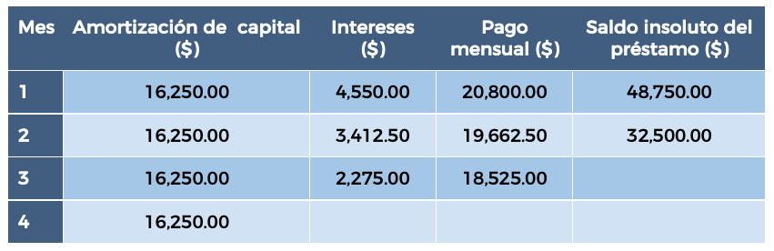 1. Amortización fija mensual: $16,250.00.