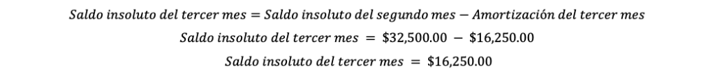 1. El saldo insoluto después del segundo mes es de $32,500.00.